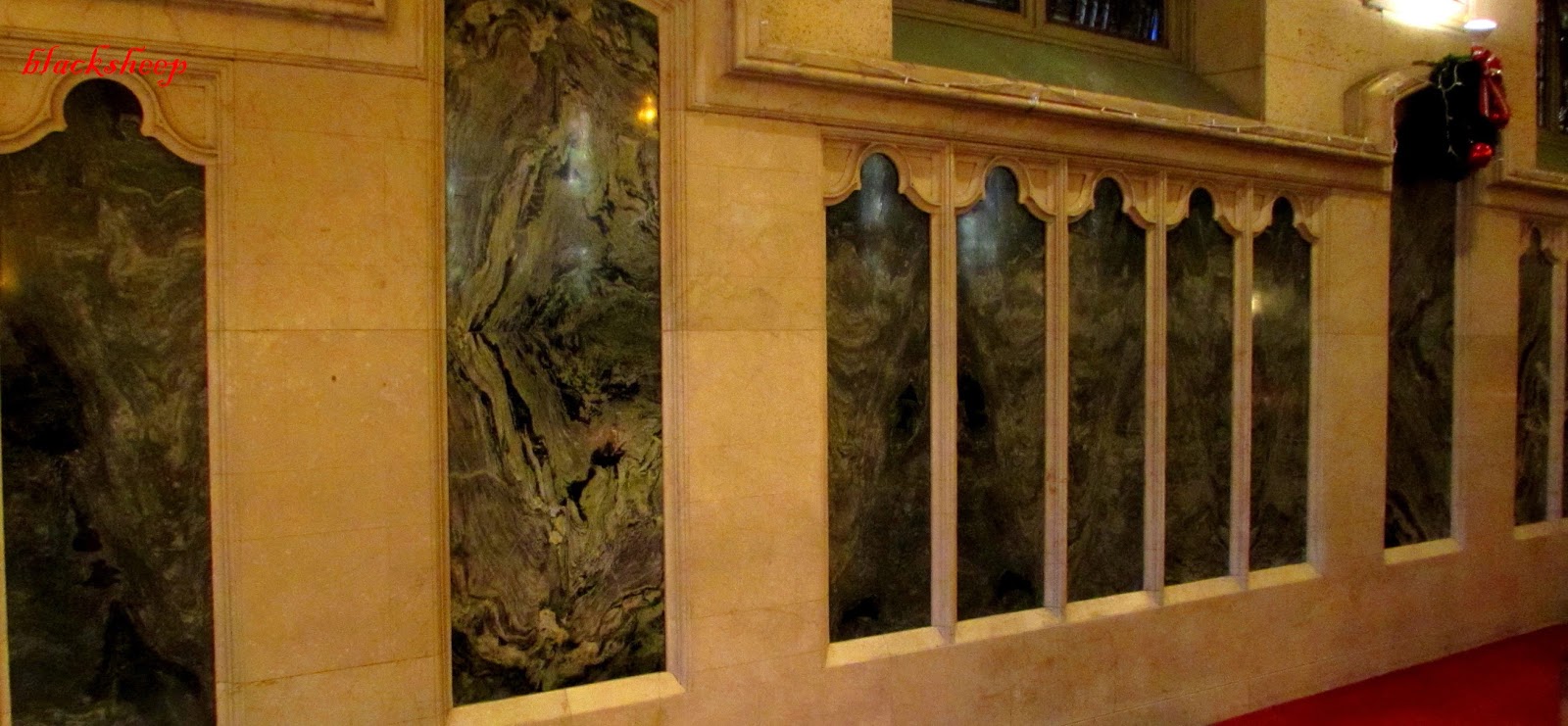 ... the inside has loads of green marble in the panels of the walls and the columns.....